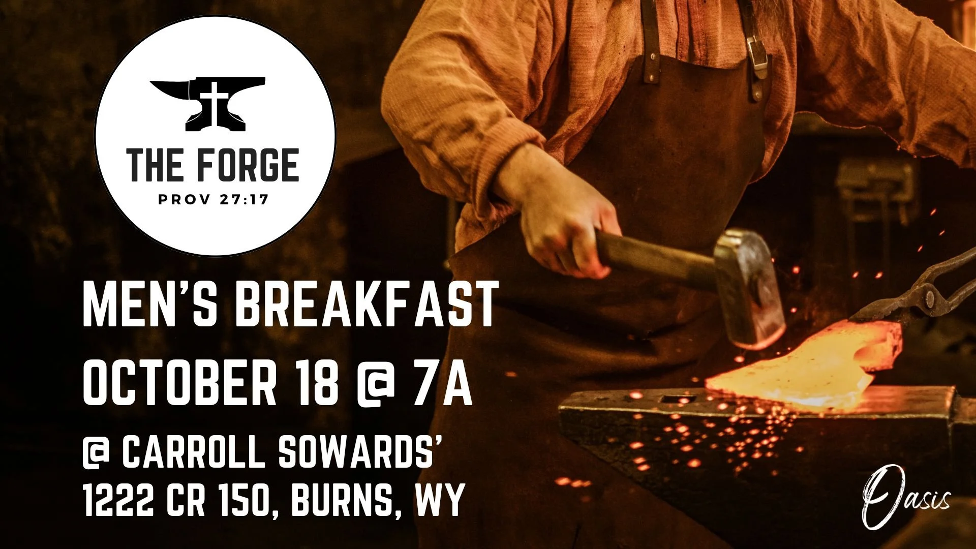 The Forge - Men’s Breakfast Saturday, October 18, 2025 7:00 AM 8:00 AM Carroll Sowards' 12222 Rd 150 Burns, WY, 82053 United States (map) Google Calendar ICS